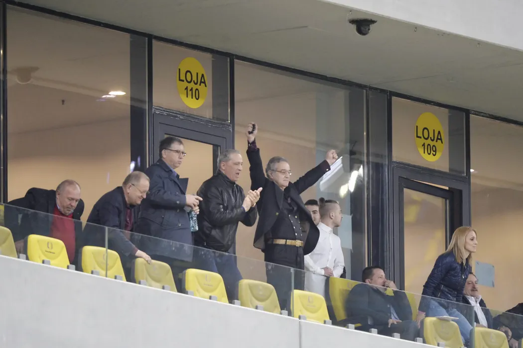 Finantatoruli formatiei FCSB, George Becali (D), reactioneaza dupa inscrierea unui gol in timpul meciului de fotbal contra echipei CS U Craiova din etapa a IV-a a play-off-ului Ligii 1, disputat pe Arena Nationala din Bucuresti, luni, 9 aprilie 2018. ANDREEA ALEXANDRU / MEDIAFAX FOTO