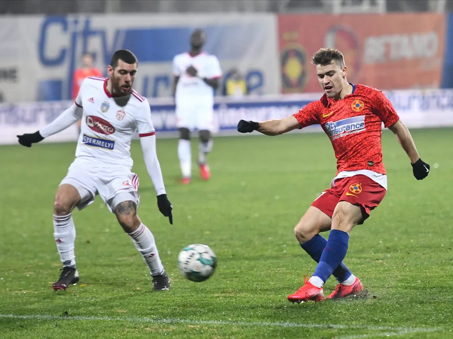 Panagiotis Deligianidis si Darius Dumitru Olaru in meciul de fotbal dintre FCSB si Sepsi OSK Sfantu Gheorghe, contand pentru Liga 1 Casa Pariurilor, desfasurat fara spectatori pe Terenul principal al Centrului National de Fotbal din Mogosoaia, luni 21 decembrie 2020. © FOTO:Razvan Pasarica/SPORT PICTURES