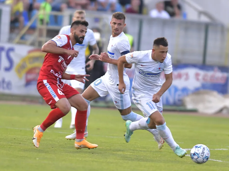 Enriko Papa, Florin Lucian Tanase si Olimpiu Vasile Morutan in meciul de fotbal dintre FC Botosani si FCSB, contand pentru Liga 1 Casa Pariurilor, desfasurat pe Stadionul Municipal din Botosani, joi 15 iulie 2021. © FOTO:Razvan Pasarica/SPORT PICTURES