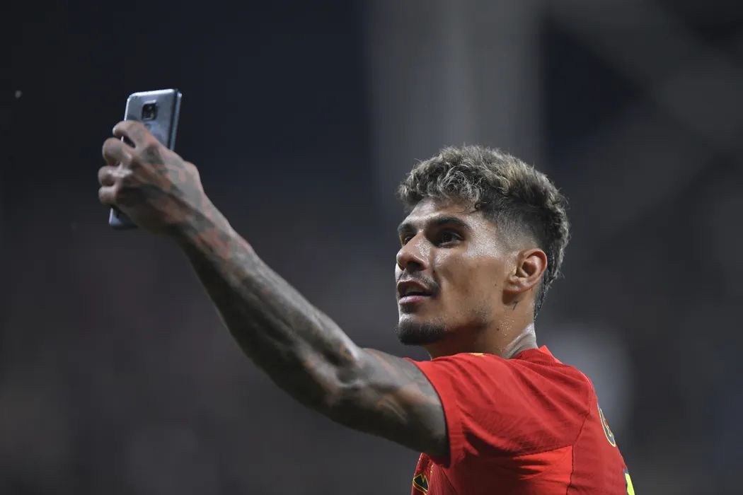 Coman se pozeaza cu un telefon aruncat din tribuna