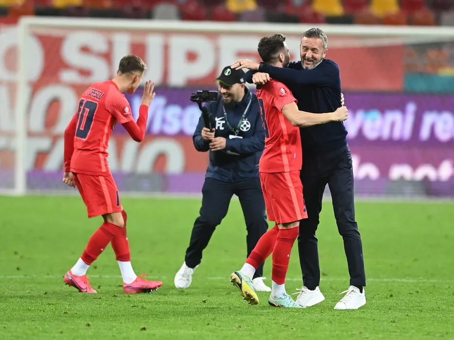 Mihai Stoica fericit alaturi de Andrei Ioan Cordea dupa meciul de fotbal dintre FCSB si Rapid Bucuresti, contand pentru Superliga Superbet, desfasurat pe Arena Nationala din Bucuresti, duminica 6 noiembrie 2022. © FOTO:Razvan Pasarica/SPORT PICTURES