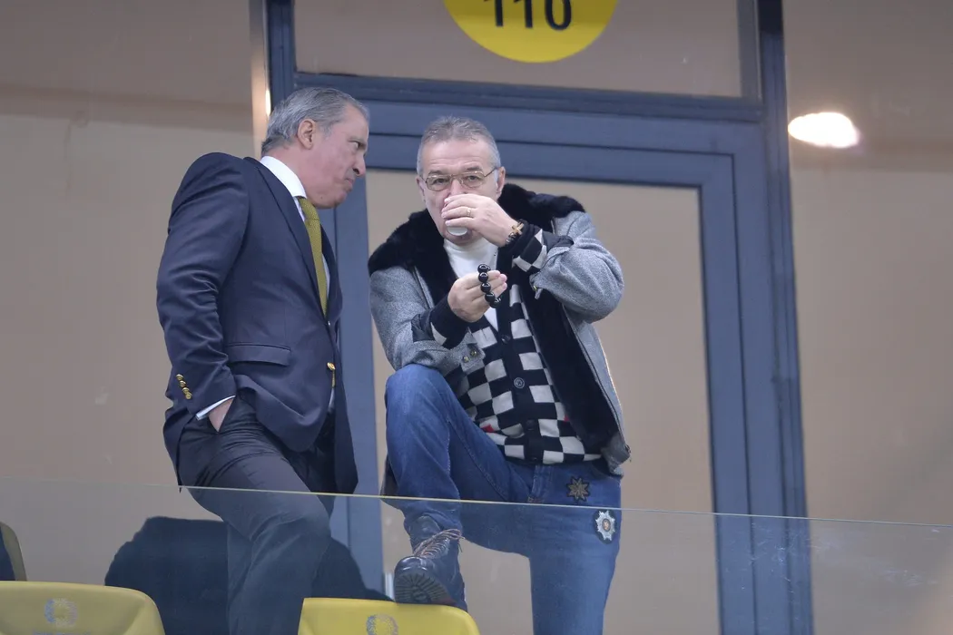 Teia Sponte (S) si finantatorul formatiei FCSB, George Becali (D), urmaresc meciul de fotbal contra echipei Hapoel Neer Sheva din runda a patra a Ligii Europa, disputat pe Arena Nationala din Bucuresti, joi, 2 noiembrie 2017. ALEXANDRU DOBRE / MEDIAFAX FOTO