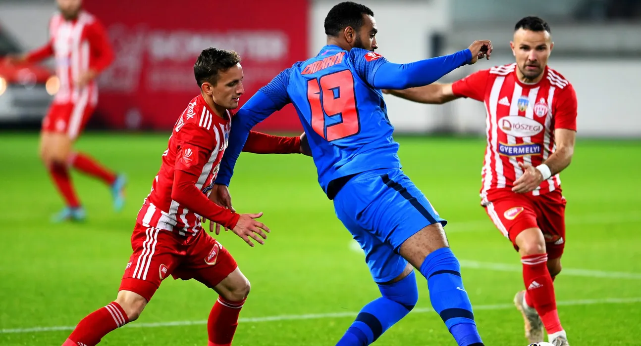 Marius Stefanescu, Abdel Slem Billel Omrani si Adnan Aganovic in meciul de fotbal dintre Sepsi OSK Sfantu Gheorghe si FCSB, contand pentru Superliga Superbet, desfasurat pe Sepsi Arena din Sfantu Gheorghe, luni 24 octombrie 2022. © FOTO:Razvan Pasarica/SPORT PICTURES