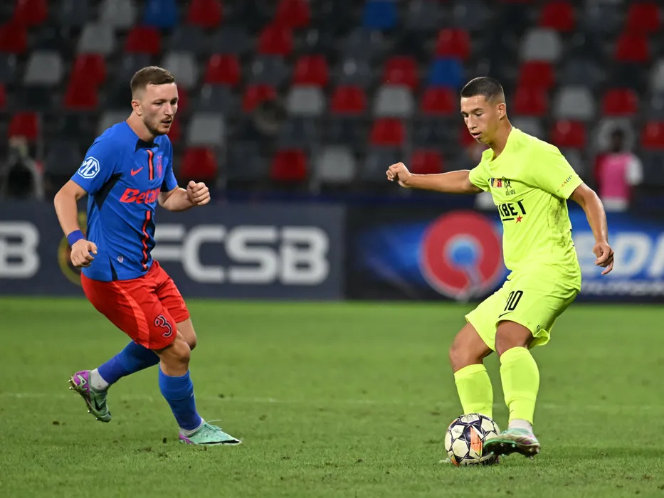 Ionuț Constantin Panțîru si David Andronic Popa in meciul dintre FCSB si Politehnica Iasi, contand pentru Superliga Superbet, desfasurat pe Stadionul Steaua-Ghencea din Bucuresti, sambata 17 august 2024. © FOTO:Razvan Pasarica/SPORT PICTURES