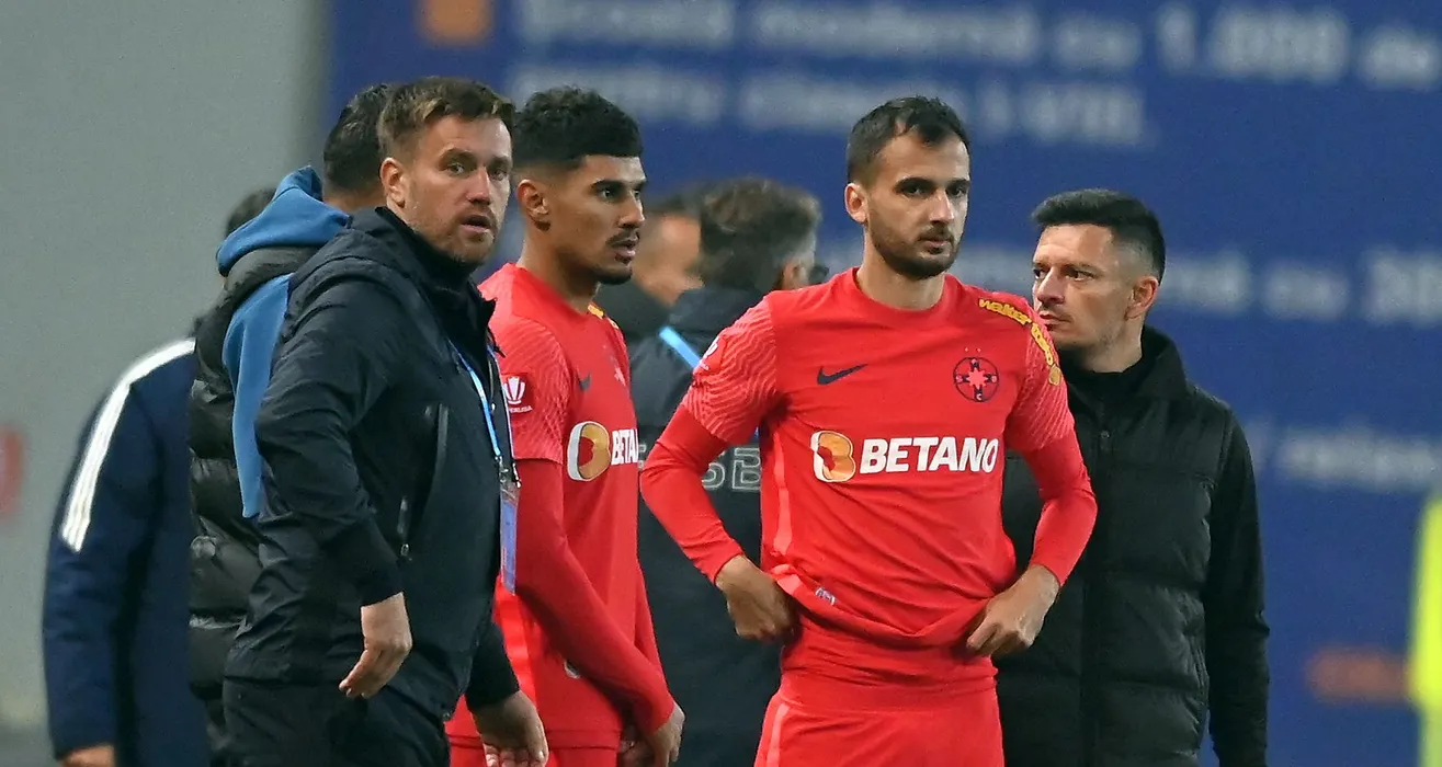 Mihai Pintilii alaturi de fotbalistii stelisti Florinel Teodor Coman si Boban Nikolov in meciul de fotbal dintre FC U Craiova si FCSB, contand pentru Superliga Superbet, desfasurat pe Stadionul Ion Oblemenco din Craiova, duminica 13 noiembrie 2022. © FOTO:Razvan Pasarica/SPORT PICTURES