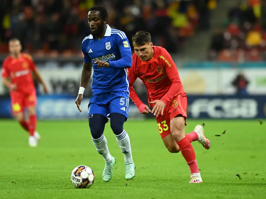 Sekou Sidibe si Risto Radunovic in meciul de fotbal dintre FCSB si FC U Craiova, din cadrul Superligii Superbet, desfasurat pe Arena Nationala din Bucuresti, duminica 12 noiembrie 2023. © FOTO:Razvan Pasarica/SPORT PICTURES