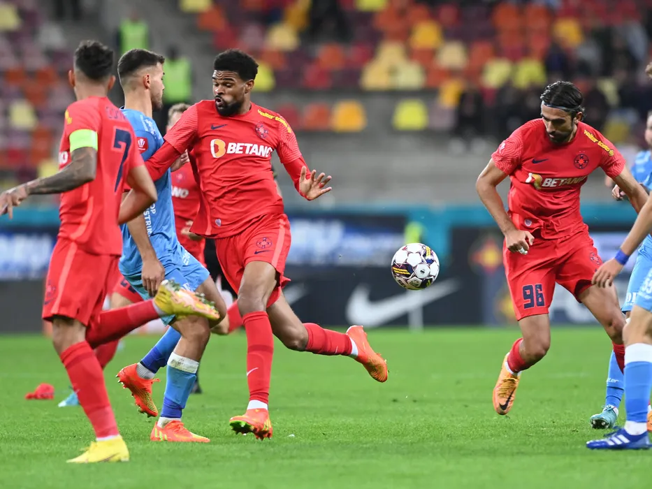 Sylas Laouari Edjouma Malcom si Abdel Slem Billel Omrani in meciul de fotbal dintre FCSB si UTA Arad, contand pentru Superliga Superbet, desfasurat pe Arena Nationala din Bucuresti, duminica 16 octombrie 2022. © FOTO:Razvan Pasarica/SPORT PICTURES