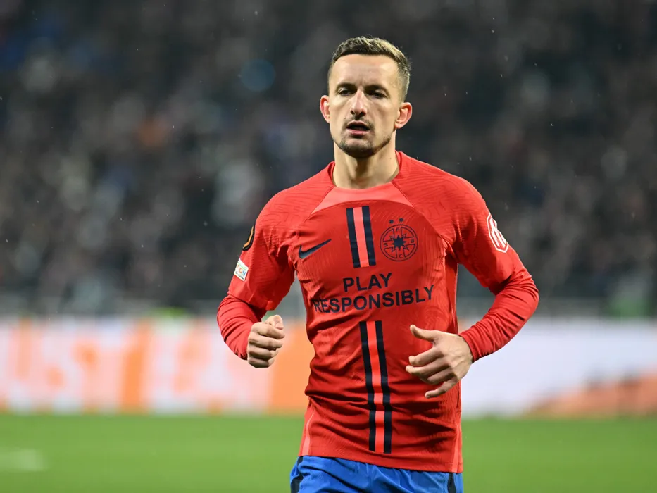 Marius Ștefănescu reacționează in meciul de fotbal dintre Olympique Lyon si FCSB din cadrul UEFA Europa League, desfasurat pe Groupama Arena din Lyon, joi 13 martie 2025. © FOTO:Razvan Pasarica/SPORT PICTURES