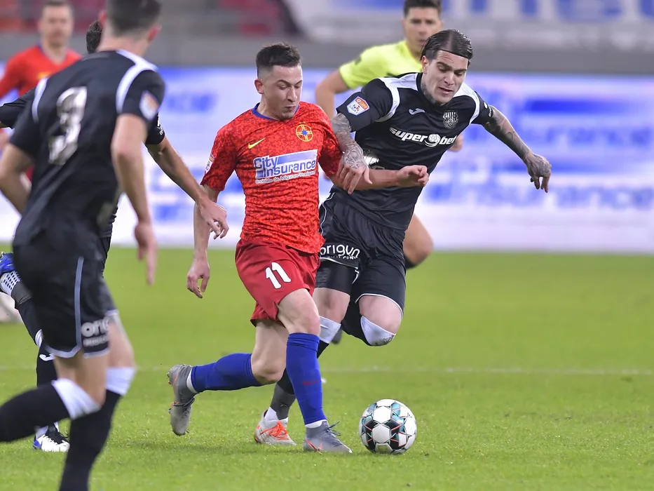 Olimpiu Vasile Morutan si Stefan Razvan Popa in meciul de fotbal dintre FCSB si CSM Politehnica Iasi, contand pentru Liga 1 Casa Pariurilor, desfasurat fara spectatori pe Arena Nationala din Bucuresti, sambata 30 ianuarie 2021. © FOTO:Razvan Pasarica/SPORT PICTURES