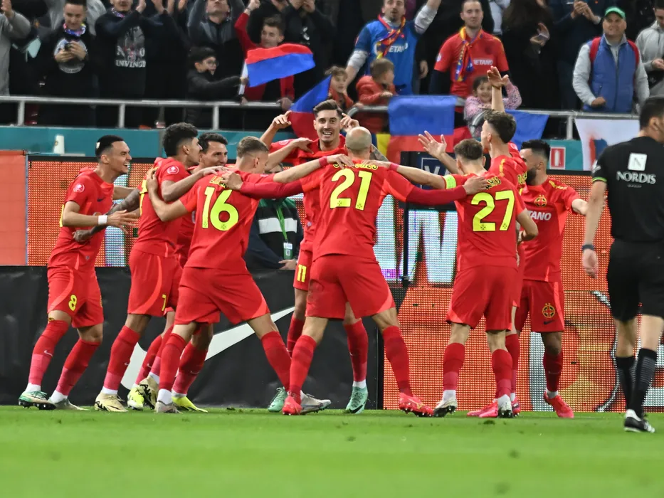 Bucurie a fotbalistilor stelisti Adrian Gheorghe Șut, Florinel Teodor Coman, Risto Radunovic si David Raul Miculescu dupa un gol marcat in meciul de fotbal dintre FCSB si Rapid Bucuresti, din cadrul Play off-ului Superligii Superbet, desfasurat pe Arena Nationala din Bucuresti, sambata 20 aprilie 2024. © FOTO:Razvan Pasarica/SPORT PICTURES