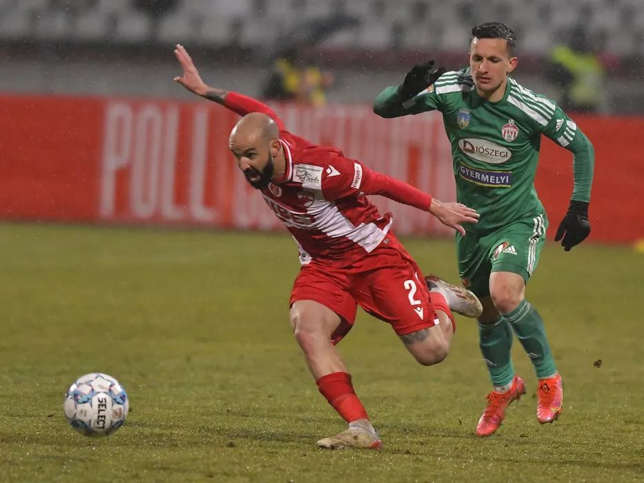 Gabriel Rodrigues De Moura si Marius Stefanescu in meciul de fotbal dintre Dinamo Bucuresti si Sepsi OSK Sfantu Gheorghe, contand pentru Liga 1 Casa Pariurilor, desfasurat pe Stadionul Dinamo din Bucuresti, marti 1 martie 2022. © FOTO:Razvan Pasarica/SPORT PICTURES