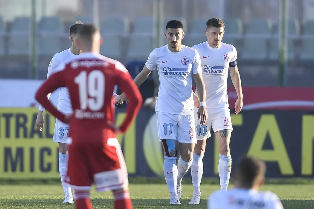 Iulian Cristea (S) si Florin Tanase (D), de la FCSB, reactioneaza in timpul meciului de fotbal contra echipei Sepsi OSK din etapa 30 a Ligii 1, disputat pe stadionul Municipal din Sfantu Gheorghe, sambata,10 aprilie 2021. ALEX NICODIM / MEDIAFAX FOTO
