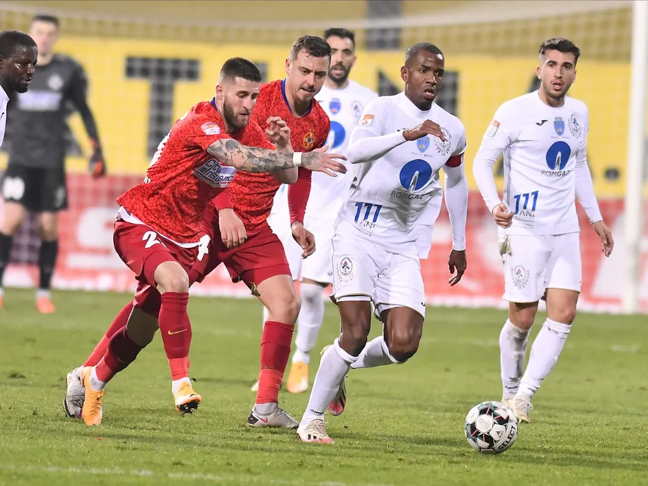 Ovidiu Marian Popescu, Andrei George Miron, Nicolao Manuel Dumitru Cardoso si Octavian Ronaldo Andrei Deaconu in meciul de fotbal dintre Gaz Metan Medias si FCSB, contand pentru Liga 1 Casa Pariurilor, desfasurat fara spectatori pe Stadionul Municipal din Medias, luni 23 noiembrie 2020. © FOTO:Razvan Pasarica/SPORT PICTURES