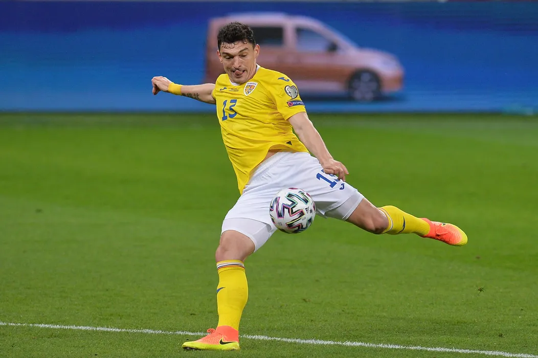 Claudiu Keseru, de la nationala de fotbal a Romaniei, suteaza in timpul meciului Romania - Germania din etapa a doua a preliminariilor Campionatului Mondial, disputat pe Arena Nationala din Bucuresti, duminica, 28 martie 2021. EDUARD VINATORU / MEDIAFAX FOTO