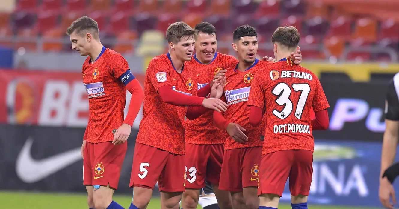 Octavian George Popescu se bucura dupa un gol marcat alaturi de Gabriel Bogdan Simion, Risto Radunovic si Florinel Teodor Coman in meciul de fotbal dintre FCSB si CSM Politehnica Iasi, contand pentru Liga 1 Casa Pariurilor, desfasurat fara spectatori pe Arena Nationala din Bucuresti, sambata 30 ianuarie 2021. © FOTO:Razvan Pasarica/SPORT PICTURES