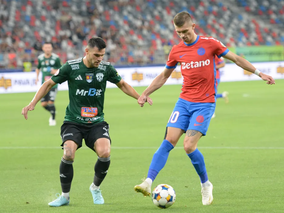 Florin Lucian Tanase si Ionut Alexandru Dinu in meciul dintre FCSB si Unirea Slobozia, contand pentru Superliga Superbet, desfasurat pe Stadionul Steaua-Ghencea din Bucuresti, duminica 10 august 2025. © FOTO:Cristina Alexandra Grigorescu/SPORT PICTURES