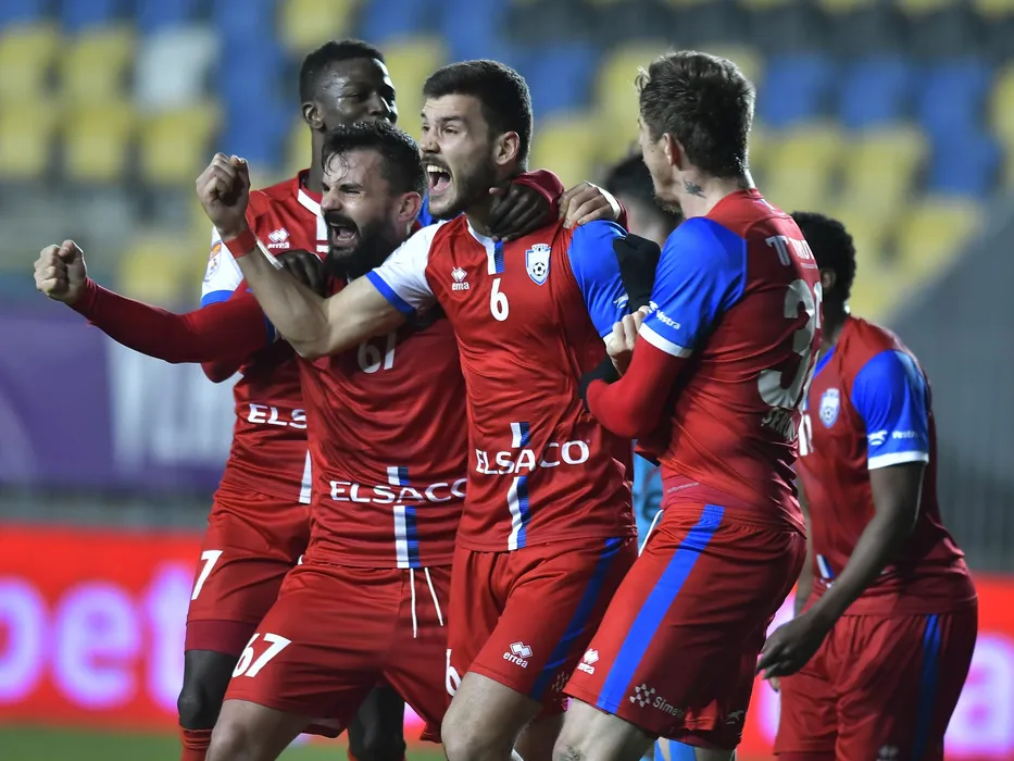Andrei Chindris se bucura dupa un gol marcat alaturi de Hamidou Keyta, Enriko Papa si Alin Ioan Seroni in meciul de fotbal dintre Chindia Targoviste si FC Botosani, contand pentru Liga 1 Casa Pariurilor, desfasurat fara spectatori pe Stadionul Ilie Oana din Ploiesti, joi 4 februarie 2021. © FOTO:Razvan Pasarica/SPORT PICTURES