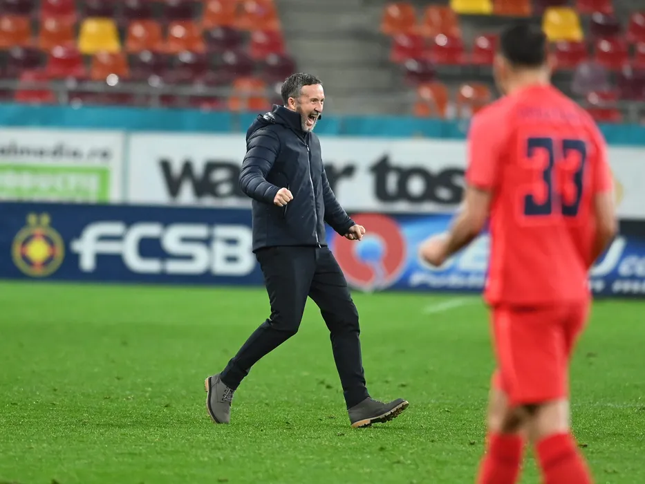 Mihai Stoica se bucura dupa victoria stelistilor din meciul de fotbal dintre FCSB si Farul Constanta, contand pentru Play-off-ul Superligii Superbet, desfasurat pe Arena Nationala din Bucuresti, luni 17 aprilie 2023. © FOTO:Razvan Pasarica/SPORT PICTURES