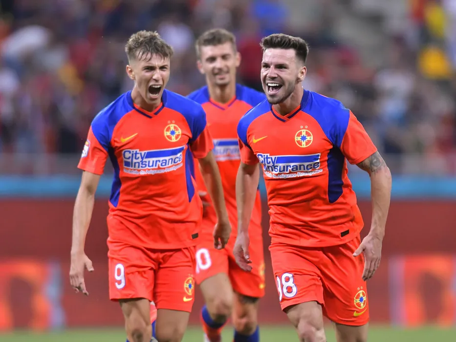 Andrei Ioan Cordea se bucura dupa un gol marcat alaturi de Florin Lucian Tanase si Octavian George Popescu in meciul de fotbal dintre FCSB si FC Shakhter Karagandy, contand pentru Turul 2 preliminar din cadrul UEFA Confrence League, desfasurat pe Arena Nationala din Bucuresti, joi 22 iulie 2021. Bucuresti *** Andrei Ioan Cordea is enjoying a goal with Florin Lucian Tanase and Octavian George Popescu in the football match between FCSB and FC Shakhter Karagandy, counting for the 2nd Preliminary Round of the UEFA Conference League, played on the National Arena in Bucharest, on Thursday, July 22 2021 Bucharest Copyright: xRazvanxPasarica/SPORTxPICTURESx