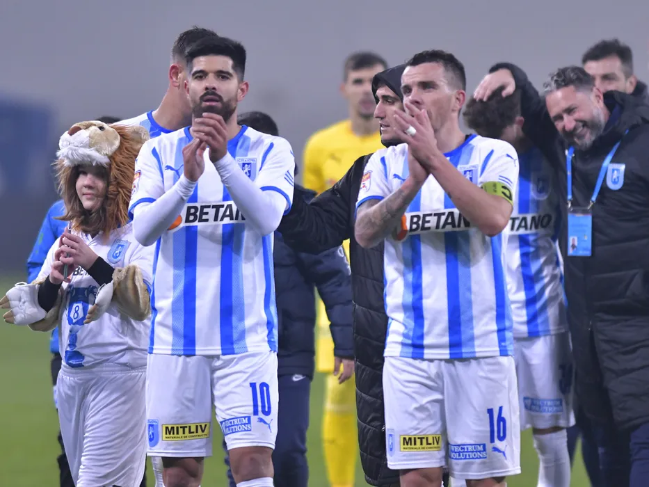 Ionut Daniel Vina si Dan Nicolae Nistor saluta galeria dupa meciul de fotbal dintre Universitatea Craiova si ACSO Filiasi, contand pentru Cupa Romaniei, desfasurat pe Stadionul Ion Oblemenco din Craiova, joi 2 decembrie 2021. © FOTO:Razvan Pasarica/SPORT PICTURES