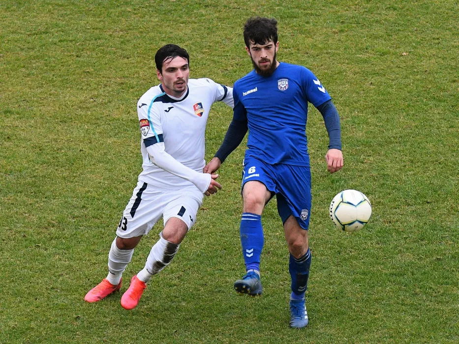 Maxim Iurcu si Rassambek Akhmatov in meciul de fotbal dintre SCM Gloria Buzau si ACS Fotbal Comuna Recea, contand pentru Liga a-2-a Casa Pariurilor, desfasurat fara spectatori pe Stadionul Gloria din Buzau, miercuri 18 noiembrie 2020. © FOTO:Adi Berger/SPORT PICTURES