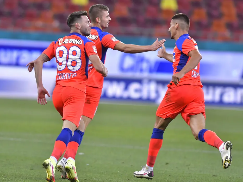 Florin Cordea se bucură alături de Florin Tănase după un gol înscris în FCSB - Sepsi OSK