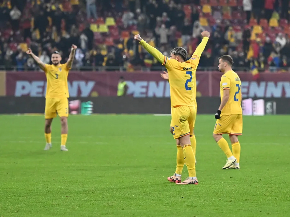 Fotbalistii romani Andrei Rațiu si Darius Olaru se bucura dupa meciul de fotbal dintre Romania si Kosovo, contand pentru Liga Natiunilor, desfasurat pe Arena Nationala din Bucuresti, vineri 15 noiembrie 2024. © FOTO:Razvan Pasarica/SPORT PICTURES