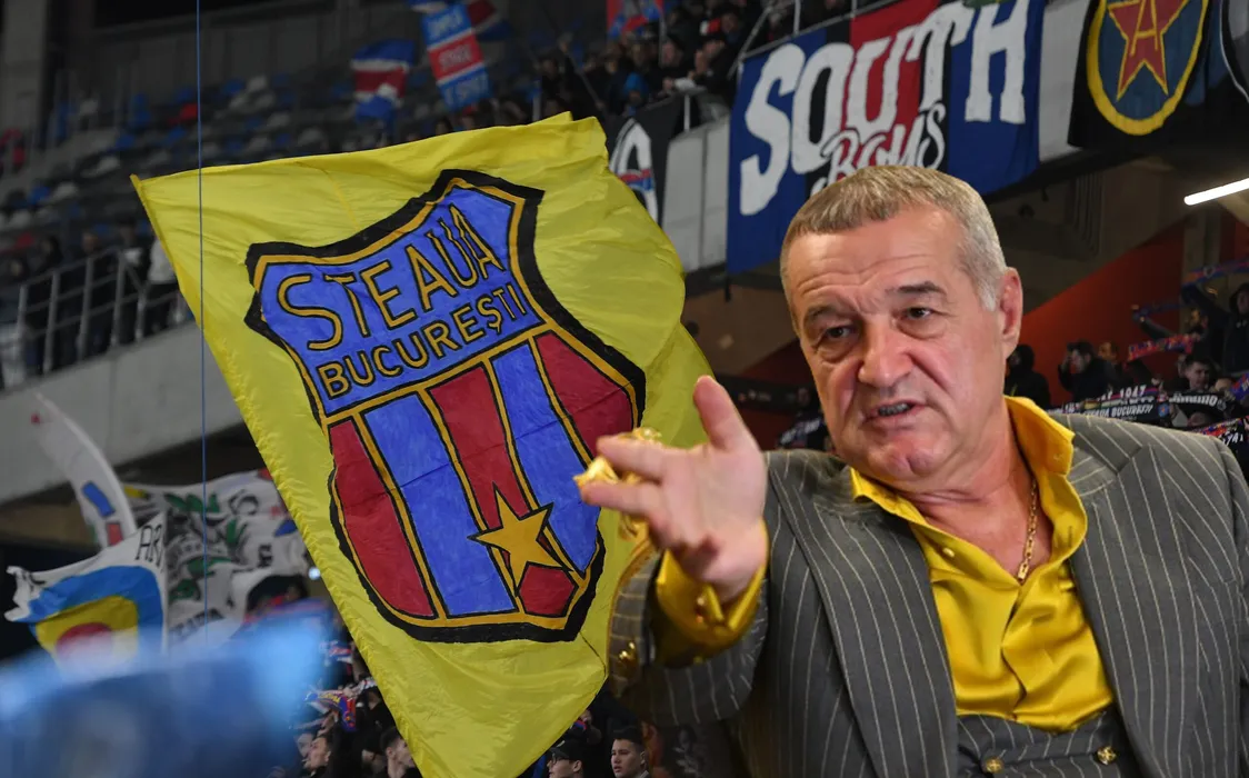 Steaguri steliste in Peluza Sud fluturate la meciul de fotbal dintre CSA Steaua Bucuresti si Politehnica Iasi, contand pentru Play-off-ul Ligii a-2-a Casa Pariurilor, desfasurat pe Stadionul Steaua-Ghencea din Bucuresti, marti 11 aprilie 2023. © FOTO:Razvan Pasarica/SPORT PICTURES