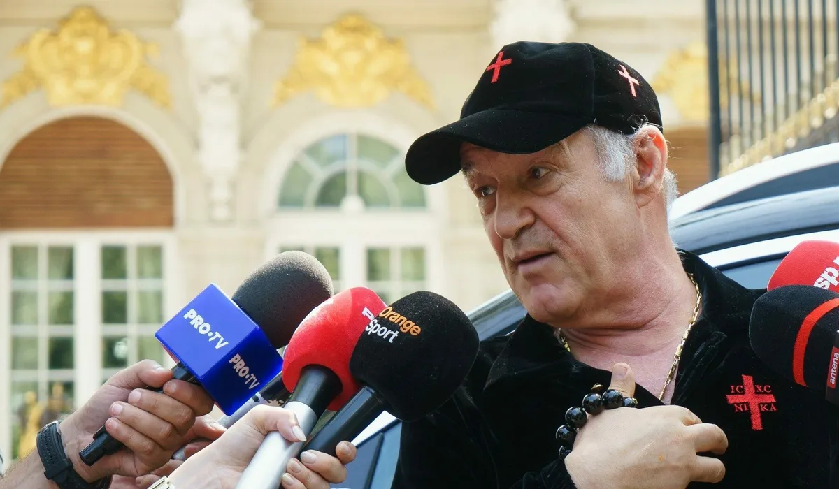 George Becali, the owner of the Romanian soccer team FCSB, speaks to the journalists gathered in front of his palace in Bucharest. George Becali, FCSB soccer team owner, press conference, Bucharest, Romania - 24 Jul 2023,Image: 791687740, License: Rights-managed, Restrictions: , Model Release: no