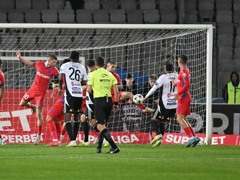 Florin Lucian Tănase si George Daniel Bîrligea în meciul de fotbal dintre Universitatea Cluj si FCSB, contând pentru Superliga Superbet, desfășurat pe Cluj Arena din Cluj Napoca, sambata 1 noiembrie 2025. © FOTO:Răzvan Pasarica/SPORT PICTURES