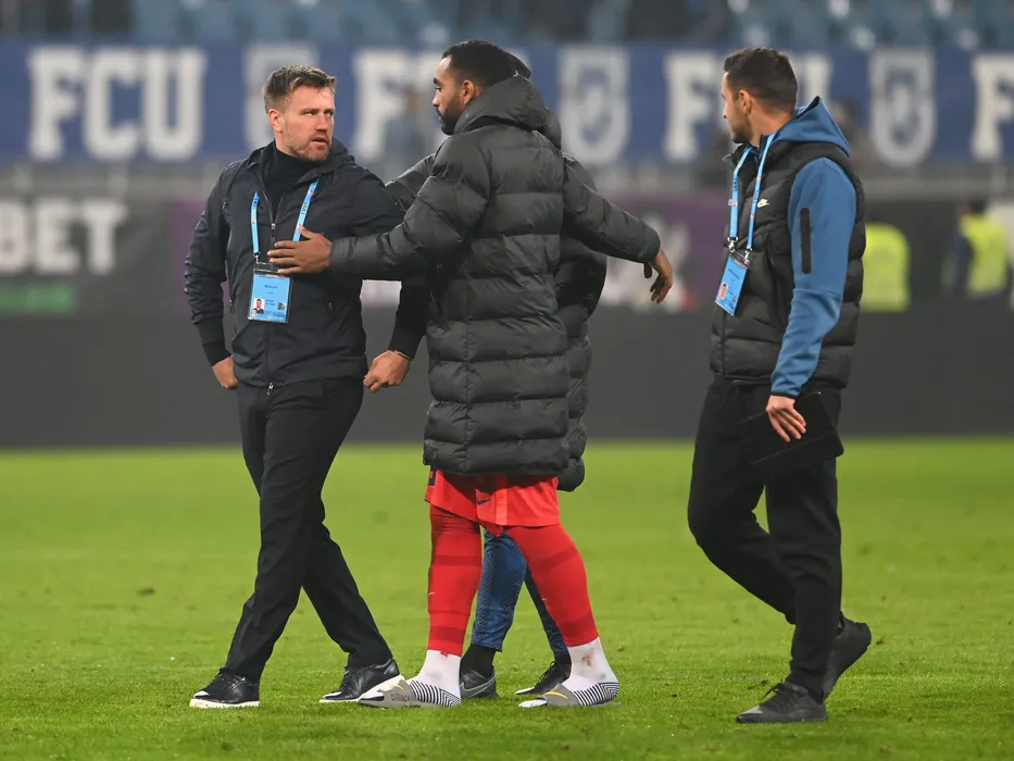 Mihai Pintilii alaturi de Abdel Slem Billel Omrani se bucura dupa meciul de fotbal dintre FC U Craiova si FCSB, contand pentru Superliga Superbet, desfasurat pe Stadionul Ion Oblemenco din Craiova, duminica 13 noiembrie 2022. © FOTO:Razvan Pasarica/SPORT PICTURES