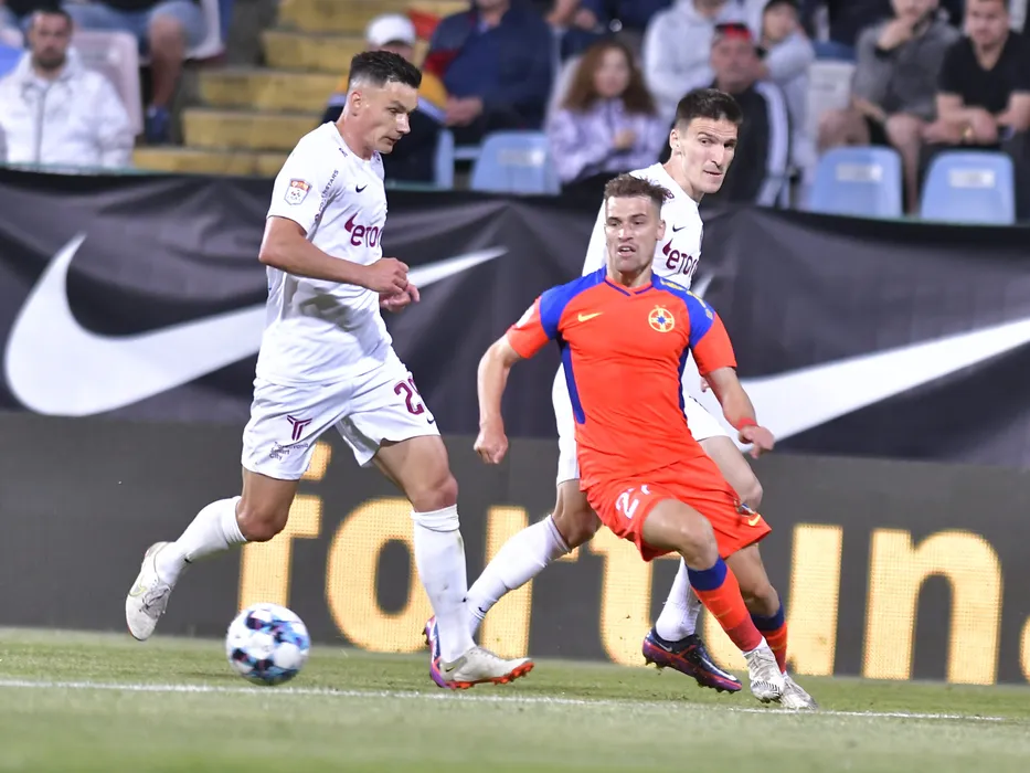 Ovidiu Hoban, Darius Dumitru Olaru si Daniel Graovac in meciul de fotbal dintre FCSB si CFR Cluj, contand pentru Play-off-ul Ligii 1 Casa Pariurilor, desfasurat pe Stadionul Gloria din Buzau, duminica 22 mai 2022. © FOTO:Razvan Pasarica/SPORT PICTURES