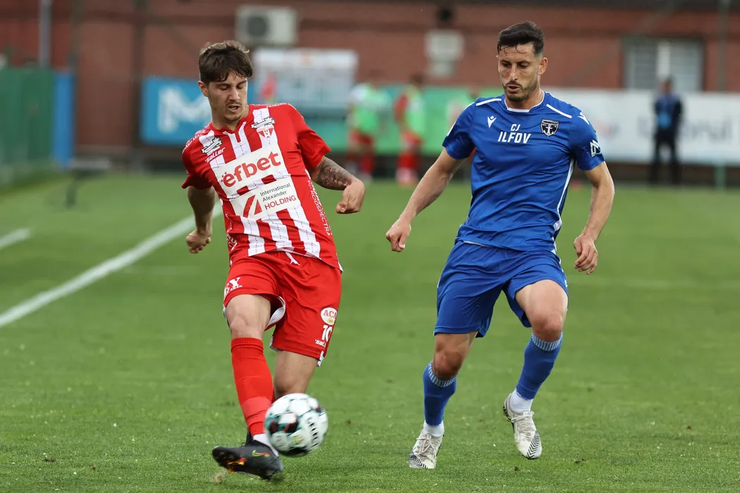 Meciul de fotbal dintre echipele FC Voluntari (echipament albastru) si UTA Arad (echipament alb/rosu) din etapa a 9-a a play-out-ului Ligii 1, disputat pe stadionul Anghel Iordanescu din Voluntari, miercurie 19 mai 2021. GEORGE FILIP / MEDIAFAX FOTO