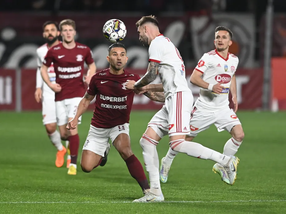 Morais Junior Iraneuton Sousa, Alexandru Tudorie si Marius Stefanescu in meciul de fotbal dintre Rapid Bucuresti si Sepsi OSK Sfantu Gheorghe, contand pentru Play off-ul Superligii Superbet, desfasurat pe Stadionul Rapid Giulesti din Bucuresti, vineri 12 mai 2023. © FOTO:Razvan Pasarica/SPORT PICTURES