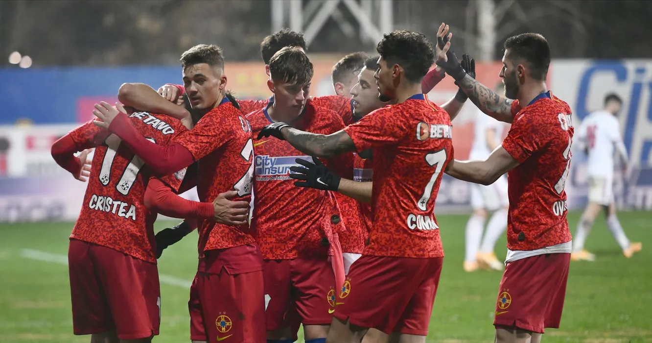 Bucurie a fotbalistilor stelisti dupa un gol marcat cu Ovidiu Ioan Perianu, Octavian George Popescu, Olimpiu Vasile Morutan, Florinel Teodor Coman si Ovidiu Marian Popescu in meciul de fotbal dintre FCSB si Sepsi OSK Sfantu Gheorghe, contand pentru Liga 1 Casa Pariurilor, desfasurat fara spectatori pe Terenul principal al Centrului National de Fotbal din Mogosoaia, luni 21 decembrie 2020. © FOTO:Razvan Pasarica/SPORT PICTURES