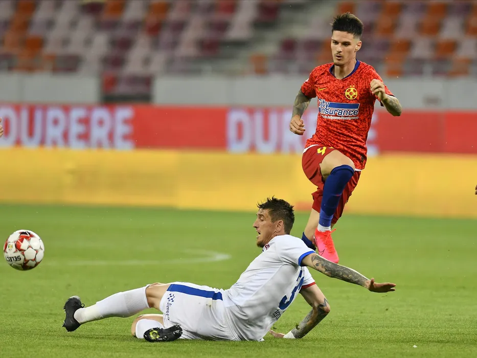 Dennis Man si Alin Ioan Seroni in meciul de fotbal dintre FCSB si FC Botosani, contand pentru play-off-ul Ligii 1 Casa Pariurilor, disputat fara spectatori pe Arena Nationala din Bucuresti, sambata 4 iulie 2020. © FOTO:Razvan Pasarica/SPORT PICTURES
