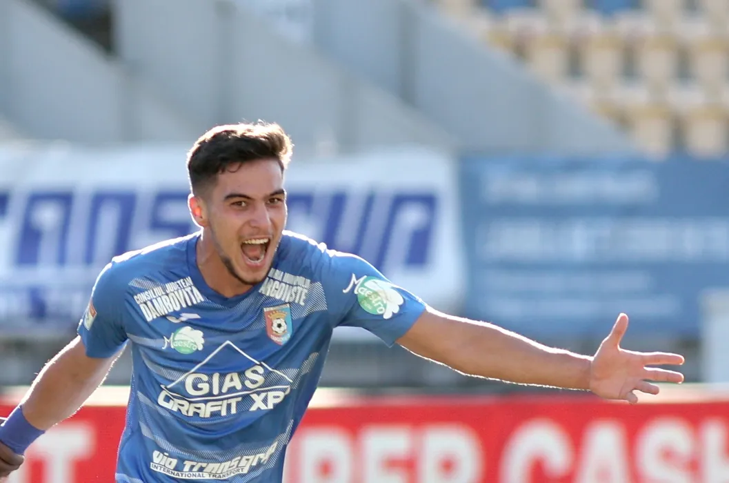 Marco Dulca si Richard Sila se bucura dupa un gol marcat in meciul de fotbal dintre Chindia Targoviste si FC Arges, contand pentru Liga 1 Casa Pariurilor, desfasurat pe Stadionul Ilie Oana din Ploiesti, miercuri 09 ferbruarie 2021. © FOTO:Gheorghe Fluster/SPORT PICTURES