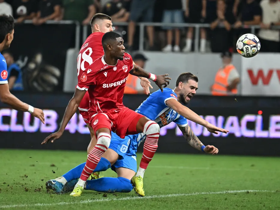 Cristian Ionuț Costin, Kennedy Kofi Boateng si Elvir Koljic in meciul de fotbal dintre Dinamo Bucuresti si Universitatea Craiova, din cadrul Superligii Superbet, desfasurat pe Stadionul National Arcul de Triumf din Bucuresti, sambata 24 august 2024. © FOTO:Razvan Pasarica/SPORT PICTURES