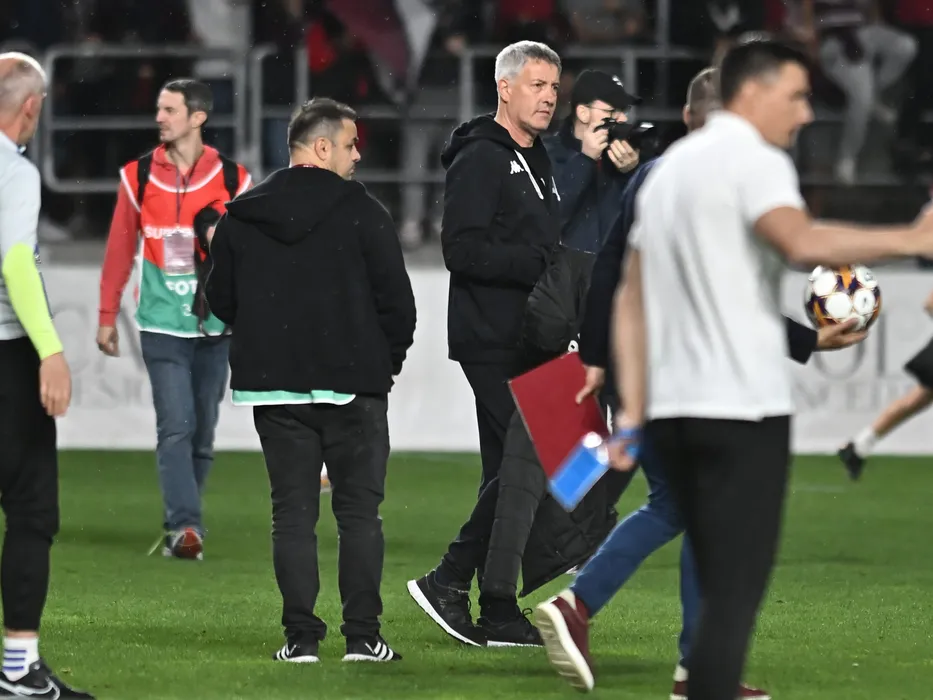 Cristiano Bergodi reacționează dupa meciul de fotbal dintre Rapid Bucuresti si CFR Cluj, din cadrul Play off-ului Superligii Superbet, desfasurat pe Superbet Arena-Giulesti din Bucuresti, sambata 6 aprilie 2024. © FOTO:Razvan Pasarica/SPORT PICTURES