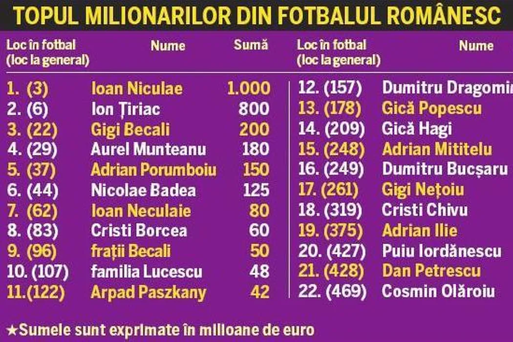 Gigi, în cădere!** În Topul Forbes 2010, patronul Stelei a căzut pe locul 22