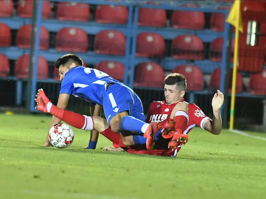 Catalin Stefan Tira si Lukas Skovajsa in meciul de fotbal dintre FC Voluntari si Dinamo Bucuresti, contand pentru play-out-ul Ligii 1 Casa Pariurilor, disputat fara spectatori pe Stadionul Anghel Iordanescu din Voluntari, duminica 2 august 2020.© FOTO:Razvan Pasarica/SPORT PICTURES