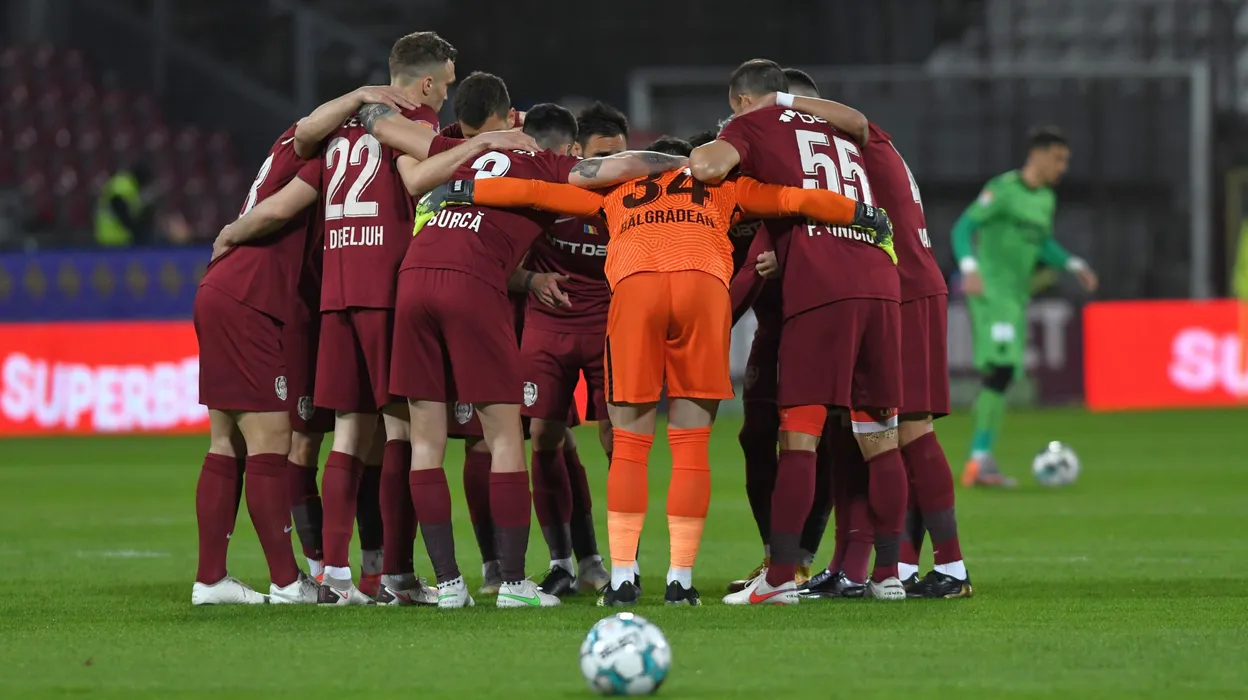 Fotbalistii clujeni la startul meciului in meciul de fotbal dintre CFR Cluj si Dinamo Bucuresti, contand pentru Liga 1 Casa Pariurilor, desfasurat fara spectatori pe Stadionul Dr. Constantin Radulescu din Cluj Napoca, luni 5 aprilie 2021. © FOTO:Flaviu Buboi/SPORT PICTURES