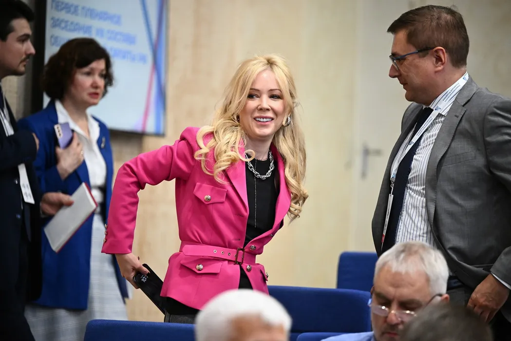 The first plenary meeting of the Civic Chamber of Russia (CCR) of the new (eighth) composition, which will work from 2023 to 2026. Member of the CCR, head of the Safe Internet League Ekaterina Mizulina (center) and member of the CCR (Association of Organizations and Citizens for Assistance to Missing and Injured Children) Denis Gubenko (right) before the meeting.