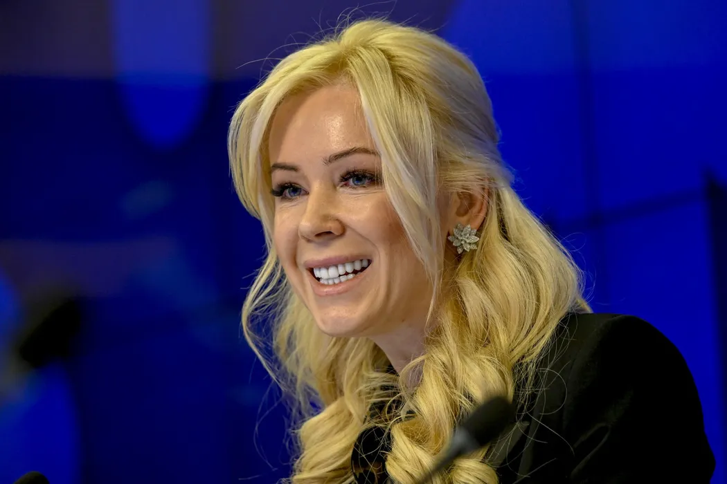 MOSCOW, RUSSIA - NOVEMBER 01: Director of the Association 'League of the Safe Internet' of the Russian Federation Ekaterina Mizulina makes a speech as she attends the Media Forum of the Commonwealth of Independent States (CIS) Countries at the Rossiya Segodnya International Media Group Press Center in Moscow, Russia on November 01, 2023. Sefa Karacan / Anadolu,Image: 818715136, License: Rights-managed, Restrictions: , Model Release: no