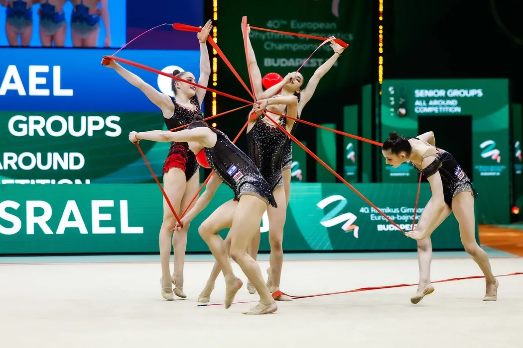 40th European Championships in Rhythmic gymnastics, Rhythmische Sportgymnastik, RSG 25.05.2024 Senior Group Israel Shani Bakanov, Adar Friedmann, Diana Svertsov, Romi Paritzki, Ofir Shaham at All-Around finals 40th European Championships in Rhythmic Gymnastics on 25.05.2024 in the Papp László Arena in Budapest Hungary. *** 40th European Championships in Rhythmic Gymnastics 25 05 2024 Senior Group Israel Shani Bakanov, Adar Friedmann, Diana Svertsov, Romi Paritzki, Ofir Shaham at All Around finals 40th European Championships in Rhythmic Gymnastics on 25 05 2024 in the Papp László Arena in Budapest Hungary Copyright: xBEAUTIFULxSPORTS/U.xFassbenderx,Image: 876545649, License: Rights-managed, Restrictions: , Model Release: no
