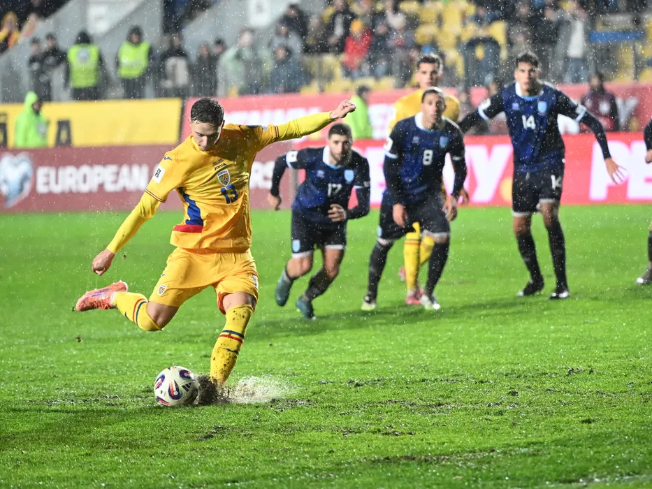 Louis Munteanu marcheaza un gol din penalty in meciul de fotbal dintre Romania si San Marino, din cadrul Preliminariilor Campionatului Mondial 2026, desfasurat pe Stadionul Ilie Oana din Ploiesti, marti 18 noiembrie 2025. © FOTO:Razvan Pasarica/SPORT PICTURES