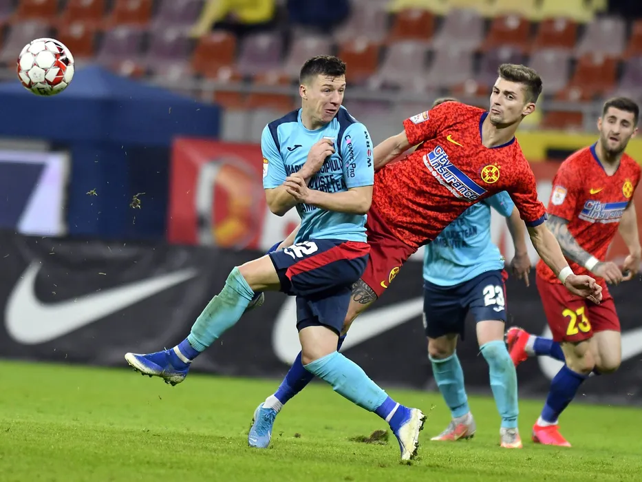 Vadim Rata si Florin Tanase in meciul de fotbal dintre FCSB si Chindia Targoviste, contand pentru Liga 1 Casa Pariurilor, disputat pe Arena Nationala din Bucuresti, sambata 22 februarie 2019. © FOTO:Razvan Pasarica/SPORT PICTURES