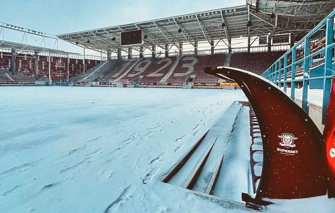 Giuleștenii au tras din greu și „au topit” zăpada de pe stadion! Cum arată terenul cu puțin timp înainte de startul meciului cu FC Botoșani
