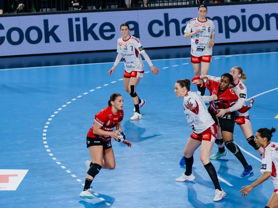 Larissa Nusser in meciul de handbal feminin dintre Gloria Bistrita și Ikast Handbold, contand pentru Liga Campionilor, desfasurat in Sala Polivalenta Teraplast Arena din Bistrita, sambata 28 martie 2026. © FOTO:Bianca Salagean/SPORT PICTURES