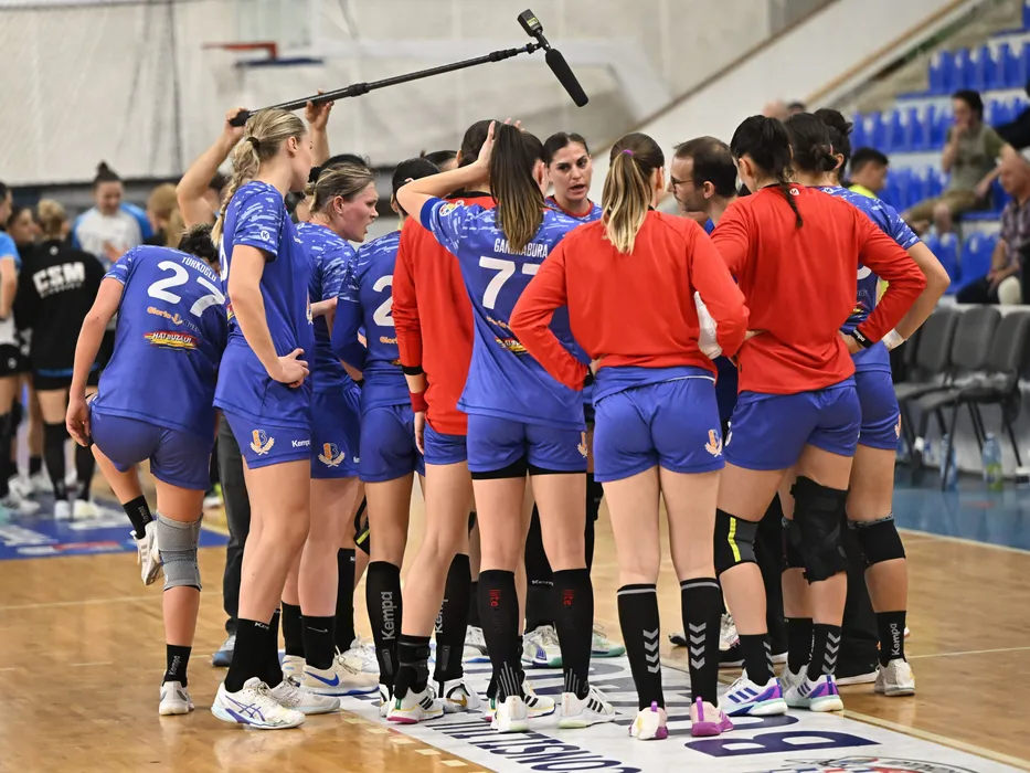 Handbalistele buzoiene la un timeout alaturi de antrenorul lor Pablo Morel in meciul de handbal feminin dintre SCM Gloria Buzau si CSM Bucuresti, contand pentru Liga Florilor, desfasurat in Sala Sporturilor Romeo Iamandi din Buzau, miercuri 9 octombrie 2024. © FOTO:Razvan Pasarica/SPORT PICTURES